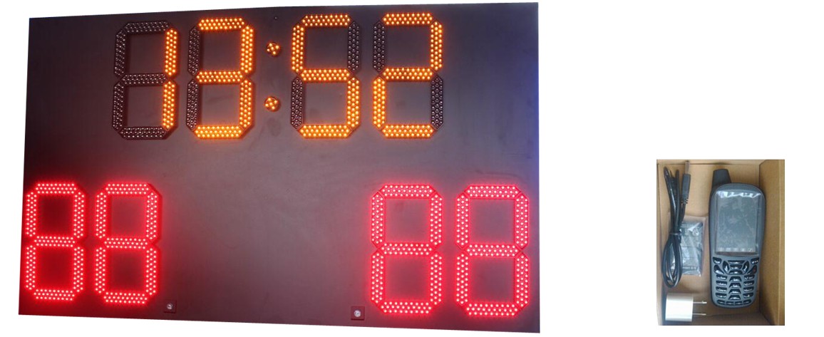 One of our most popular football scoreboards for smaller youth programs! Medium size - 1300mm x 780mm with 8500cd/sqm super bright. Visibility is 300 meters.The heavy-duty galvanneal steel scoreboard cabinet with powder-coat finish means your scoreboard is the strongest in the industry and will look new for many seasons! They require minimal maintenance due to the front-access panel with independent LED modules. 16 levels of adjustable brightness, IP65 waterproof Simple, Modern, Durable woreless remote with a bright 3-inch LCD screen is very easy to operate!